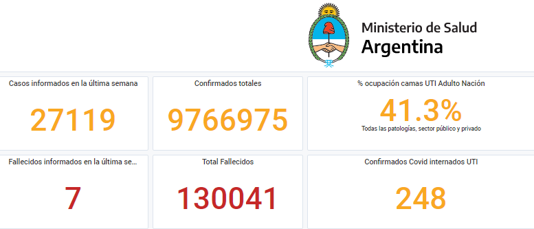 La información epidemiológica del ministerio de salud de la nación tiene a la fecha estos números