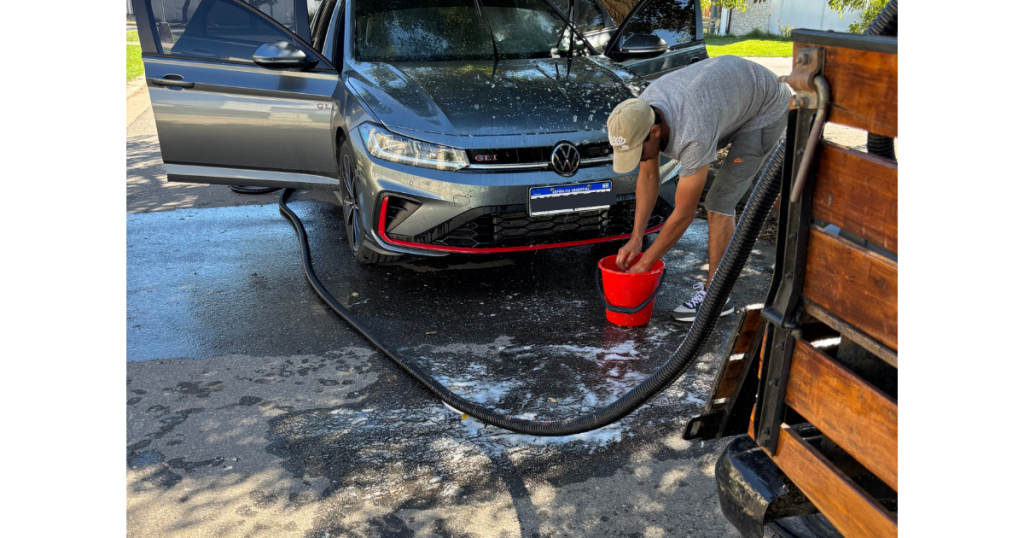 Así comenzó a funcionar el lavadero móvil en Marcos Juárez, un servicio que se traslada hasta la casa o el lugar de trabajo del cliente y realiza el lavado completo del vehículo en el lugar.