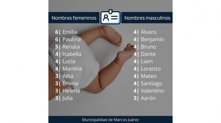 Cuáles fueron los nombres más elegidos durante 2022 en Marcos Juárez