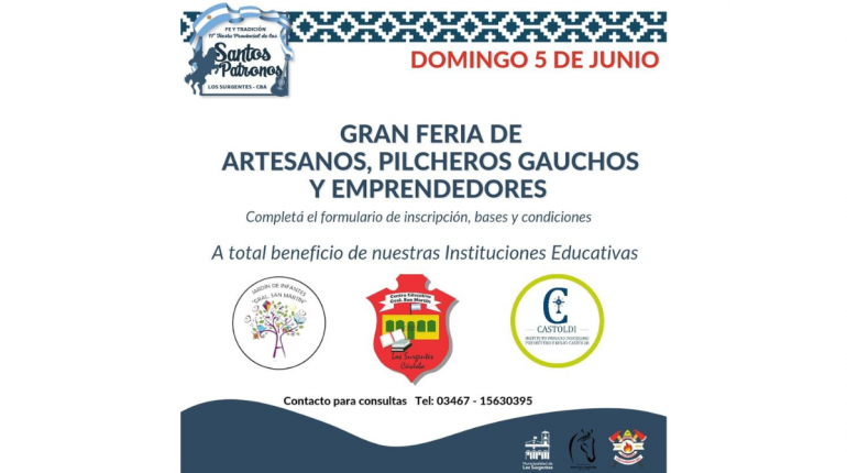 Se aproxima la 11° Fiesta Provincial de los Santos Patronos en Los Surgentes y la municipalidad invita a participar de la gran Feria a realizarse en el «Complejo del Centenario Rogelio Vaccarini» a total beneficio de las escuelas de la localidad.