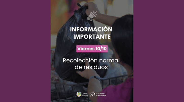 La Municipalidad de Marcos Juárez informó que el viernes 10 de octubre el servicio de recolección de residuos se llevará a cabo de manera normal, manteniendo los horarios habituales. Se solicita a los vecinos sacar los residuos en los horarios correspondientes para contribuir al orden y la limpieza de la ciudad.
