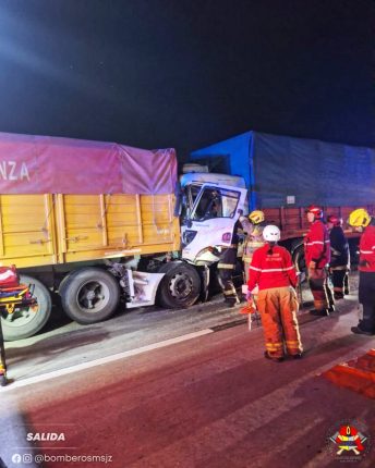 El hecho Cerca de las 20 horas, se registró un fuerte choque por alcance entre dos camiones en el kilómetro 431 de la Autopista. El impacto fue de tal magnitud que uno de los conductores quedó atrapado en la cabina de su vehículo. Rescate y asistencia médica Bomberos voluntarios debieron emplear herramientas especiales para poder […]