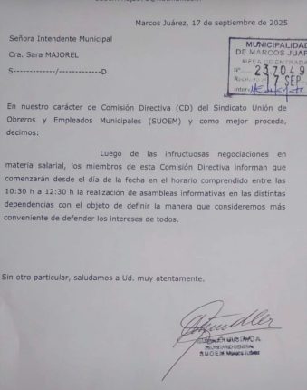 Pedido del sindicato El Sindicato Unión de Obreros y Empleados Municipales (SUOEM) presentó un pedido de recomposición salarial que acompañe el ritmo de la inflación. La solicitud fue ingresada por mesa de entradas y abrió una nueva instancia de negociación con el Ejecutivo municipal. La oferta oficial En la reunión del martes, el Ejecutivo propuso […]