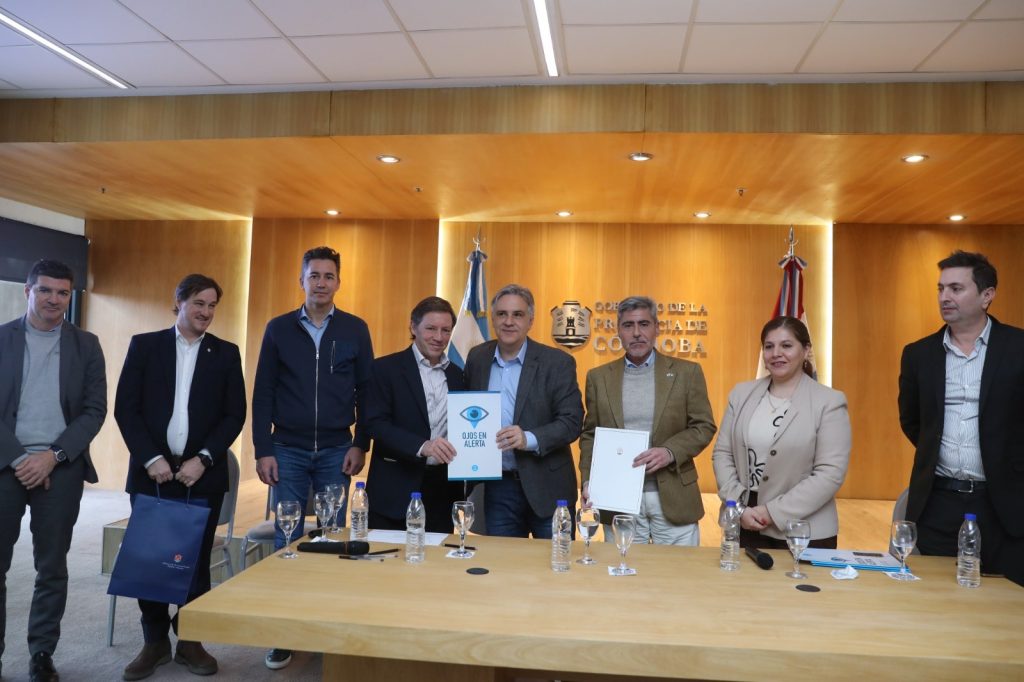 En un acto encabezado por el gobernador Martín Llaryora, el Gobierno de la Provincia de Córdoba, a través del Ministerio de Seguridad, firmó un convenio de colaboración con la Municipalidad de San Miguel (Buenos Aires), con el objetivo de innovar en materia de seguridad, mediante la aplicación del programa «Ojos en Alerta», utilizado para la prevención y aviso temprano del delito.