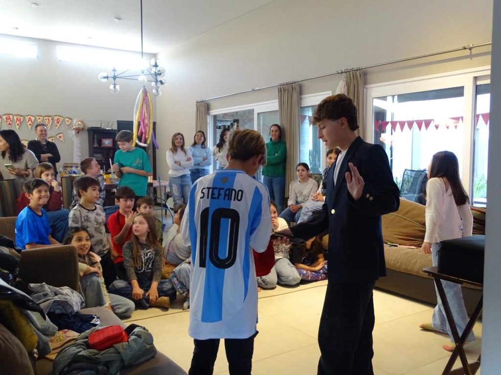 El primer show formal llegó en 2023, durante el festejo del Día del Niño en el Jardín Mitre. La oportunidad surgió a partir de un contacto familiar. “Mi mamá le contó a unas amigas que yo hacía magia y justo una trabajaba en el jardín”, recuerda.